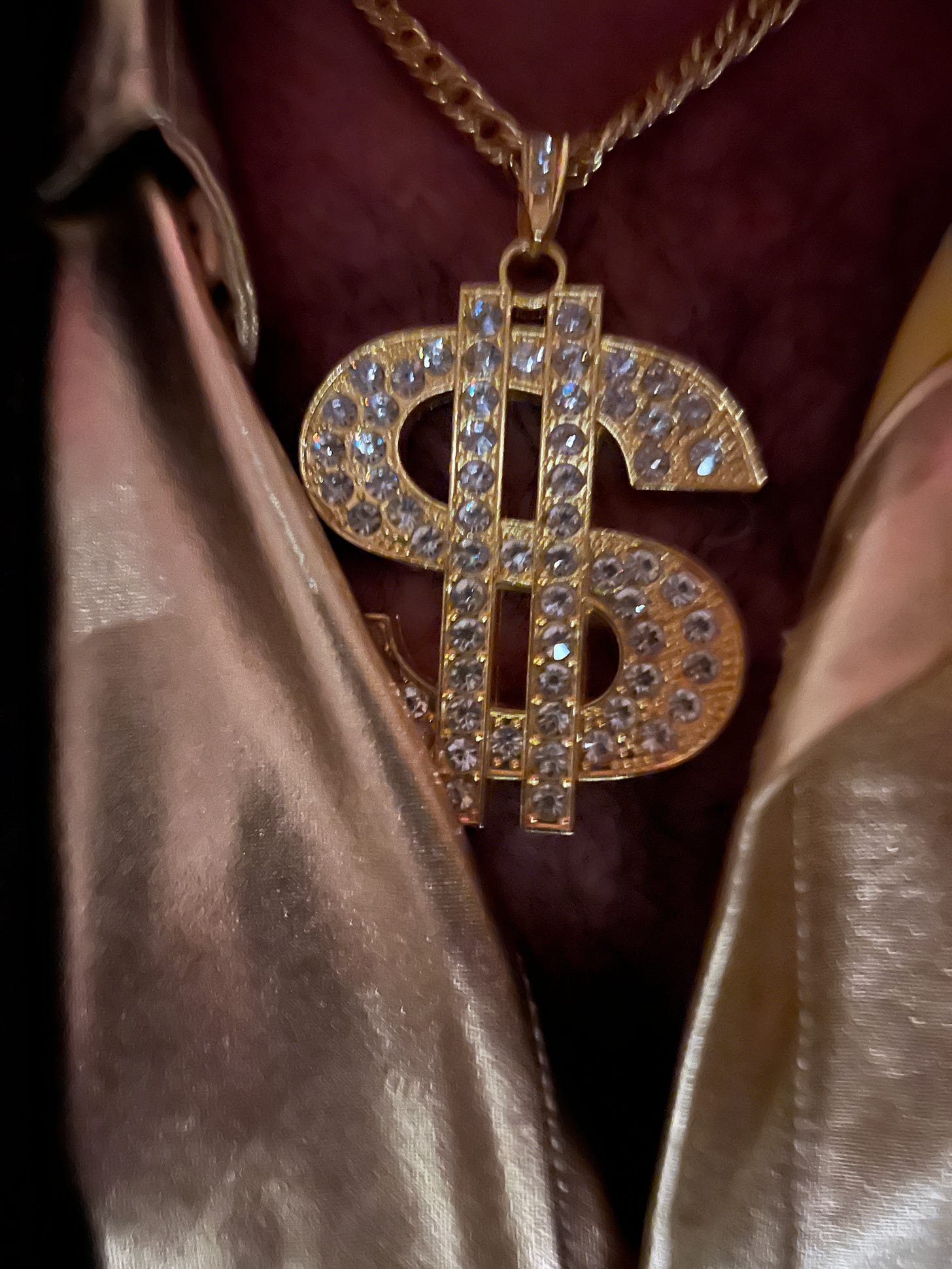 My official birthday is Wednesday, but the partay was last night — and it was a howling success. Small but mighty, glittery and goldy enough to light up the whole neighborhood. The champagne was flowing, and there was lots (and I mean lots) of singing and dancing to funk, Michael Jackson, Wham, and Nirvana. My friends went all out with their outfits — full bling commitment. Here is the best picture: