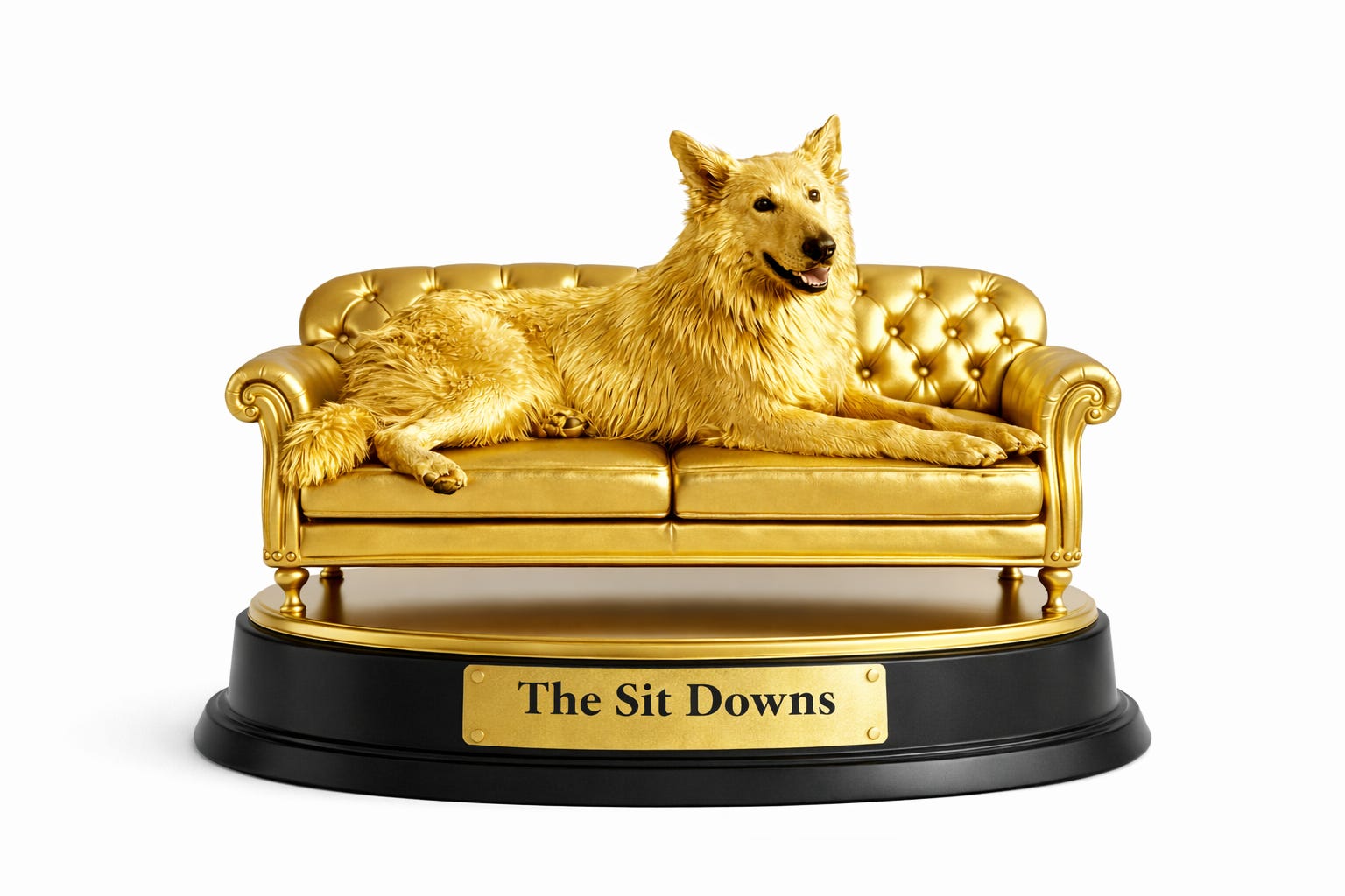 The Sit Downs are awards honoring sitting on stuff as an artistic and musical practice. They recognize canines who raise the form through composition: posture, surface, atmosphere.